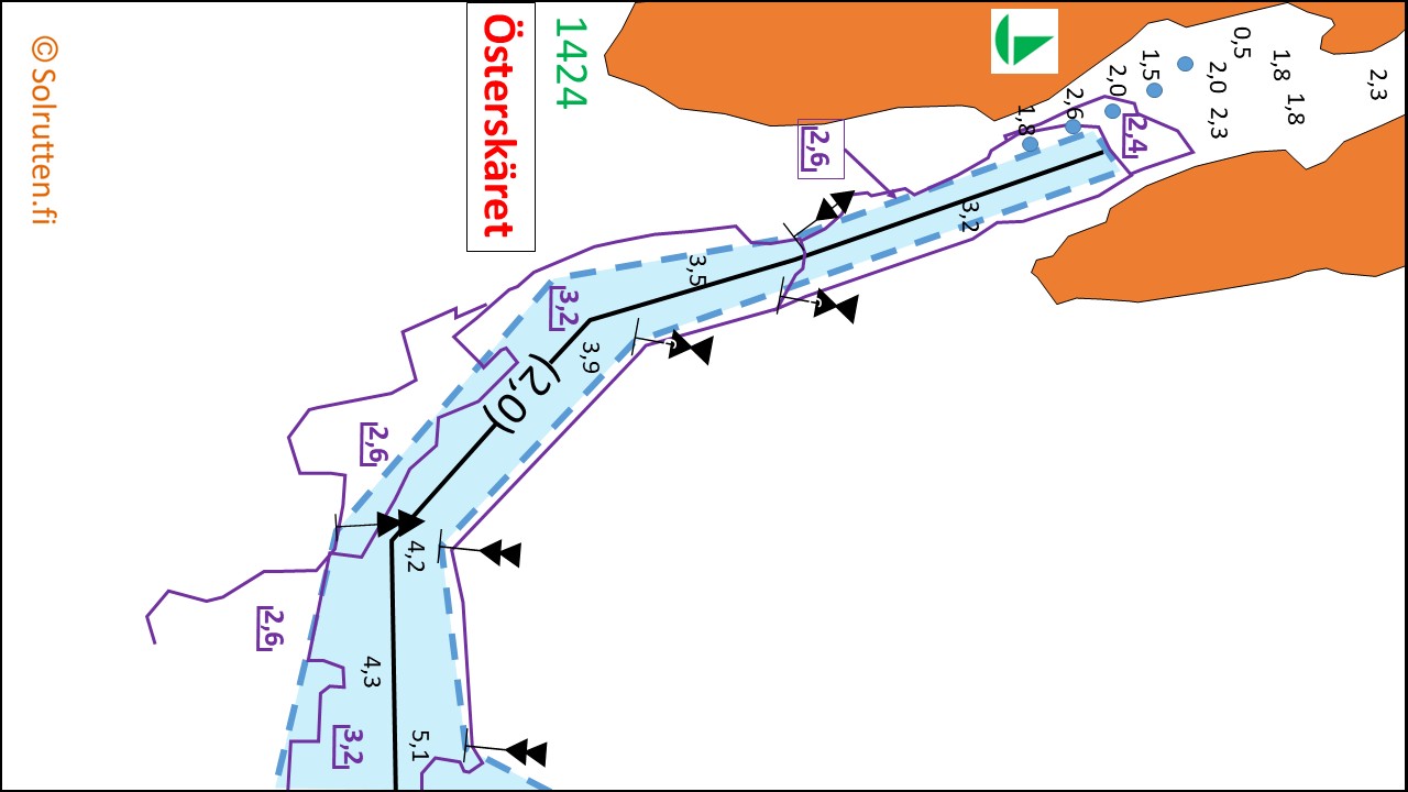 © Andelslaget Solrutten äger ovanstående beskrivning och dess rättigheter. Andelslaget Solrutten bär inget ansvar för riktigheten i de uppgifter som ingår eller medföljer bifogade beskrivningar, som skall uppfattas endast som indikativa och kan innehålla felaktigheter. Officiellt farledsdata tillhandahåller Trafikverket. Djupdata ägs av Andelslaget Solrutten, Wasa Segelförening rf, Bergö Fiskargille rf och Oy Mapteam Ab. Tillgång till dessa djupdata har även Trafikverket, staden/kommunen, markägaren, vattenägaren, farledsunderhållaren och hamnvärden. Djupundersökningarna har utförts med försvarsmaktens tillstånd och kan inte överföras på andra utan tillstånd av ägaren Wasa Segelförening rf. Andelslaget Solrutten tar inte ansvar för att djupundersökningarna är riktigt gjorda och felfria. |